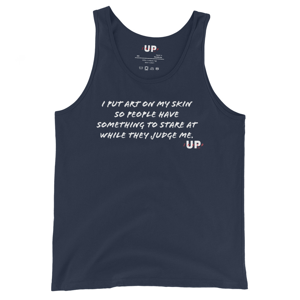 Be the first to review “I PUT ART ON MY SKIN SO PEOPLE HAVE SOMETHING TO STARE AT WHILE THEY JUDGE ME Mens Tank”